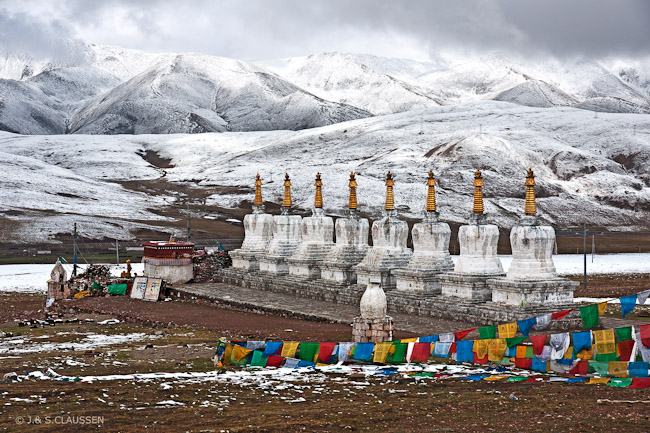 Stupareihe (Stupa = Reliquienschrein) auf der Passhoehe (4650m) von "Rang Go"