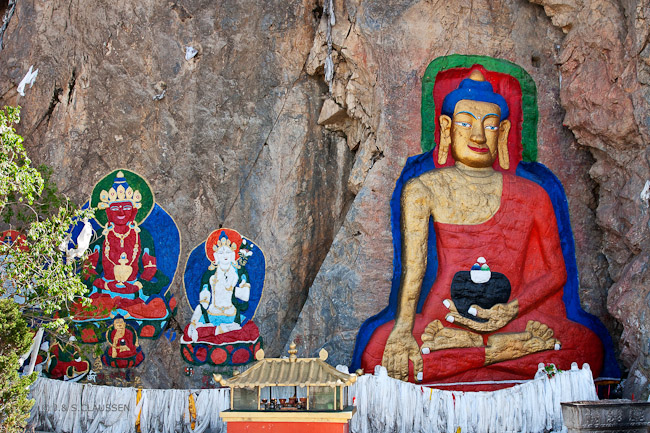 befindet sich eine riesige Felsmalerei (Relief), die den historischen Buddha "SHAKYAMUNI" darstellt.