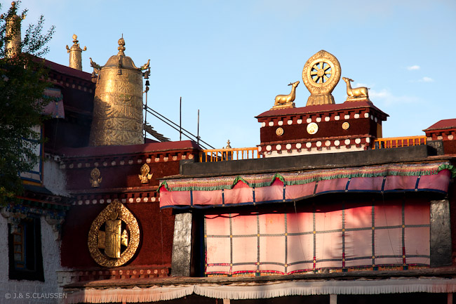 Die acht Speichen des Rades weisen auf den Edlen Achtfachen Pfad hin.