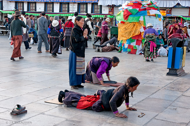 Fromme Pilgerinnen vor dem Jokhang-Tempel, der gemäß dem Buddhismus,